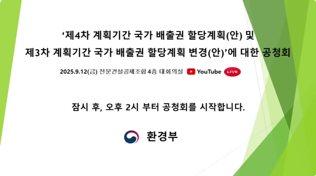 환경부/제 4차 계획기간 국가 배출권 할당계획 및 제3차 계획기간 국가 배출권 할당계획 변경 공청회/2025.09